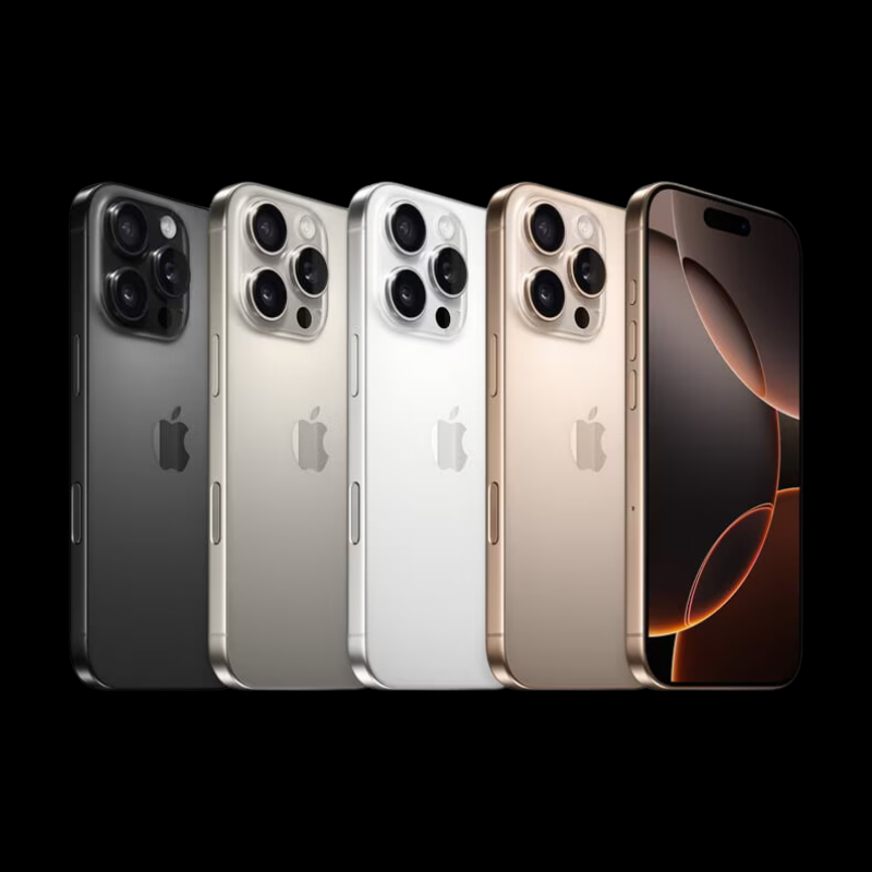 A estrutura do iPhone 16 Pro é em titânio Grau 5 com um novo acabamento por microjateamento. Como o titânio tem uma das melhores relações resistência-peso entre os metais, os modelos são superleves e incrivelmente resistentes. O iPhone 16 Pro Max vem em quatro cores lindas, incluindo a nova titânio-deserto